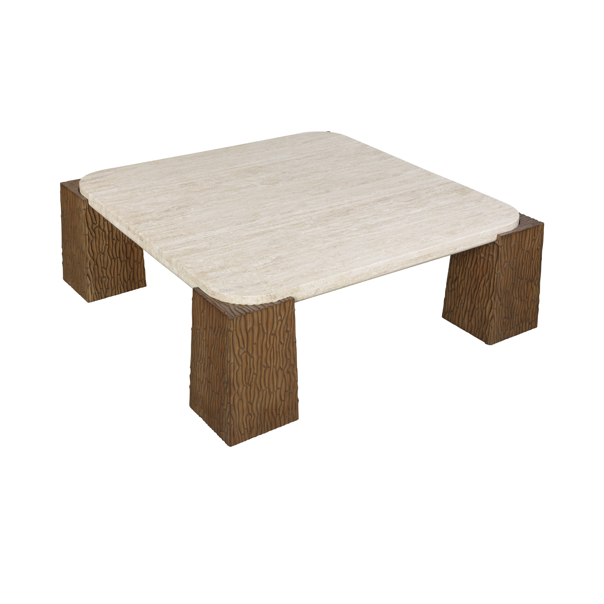 Materials: Natural Travertine, Plywood, Pine Wood Legs
